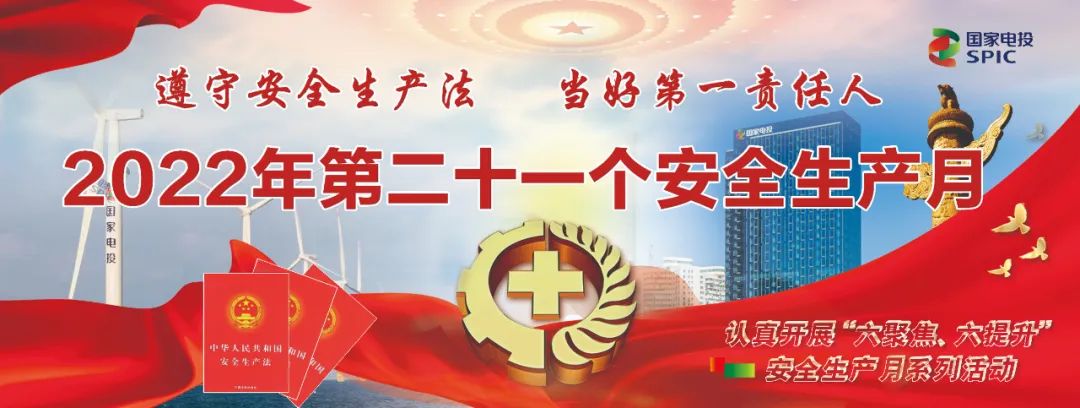 为深入贯彻习近平总书记关于安全生产重要指示,上级部委和国家电投党组关于安全生产工作部署,依据“承接上级要求、体现自有特色”原则,公司组织开展“遵守安全生产法 当好第一责任人”为主题的“六聚焦、六提升”安全生产月活动,推动各项安全生产工作落地见效,以安全稳定局面迎接党的二十大胜利召开。