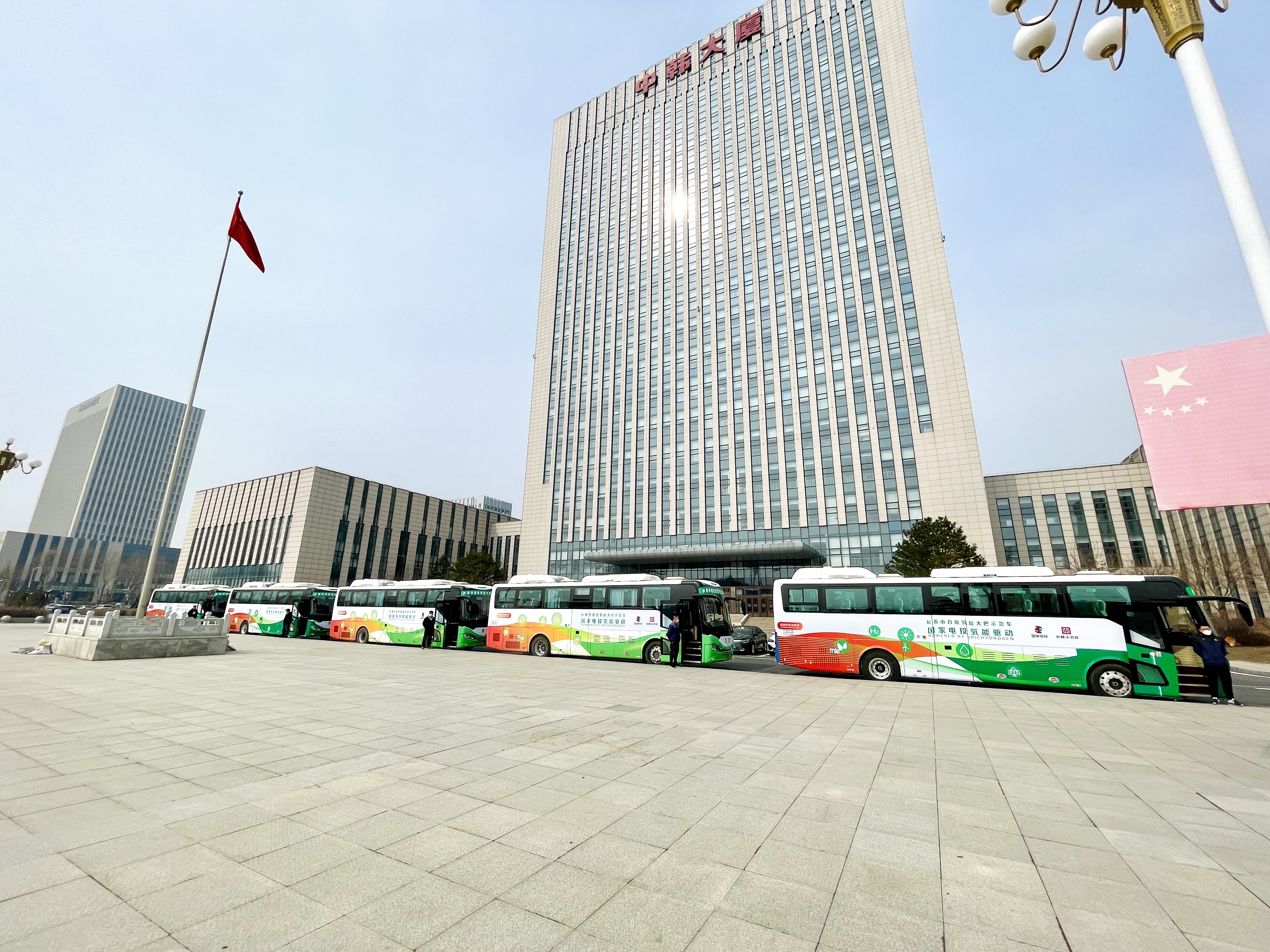图 | 吉电股份6辆氢能大巴准时抵达中韩大厦