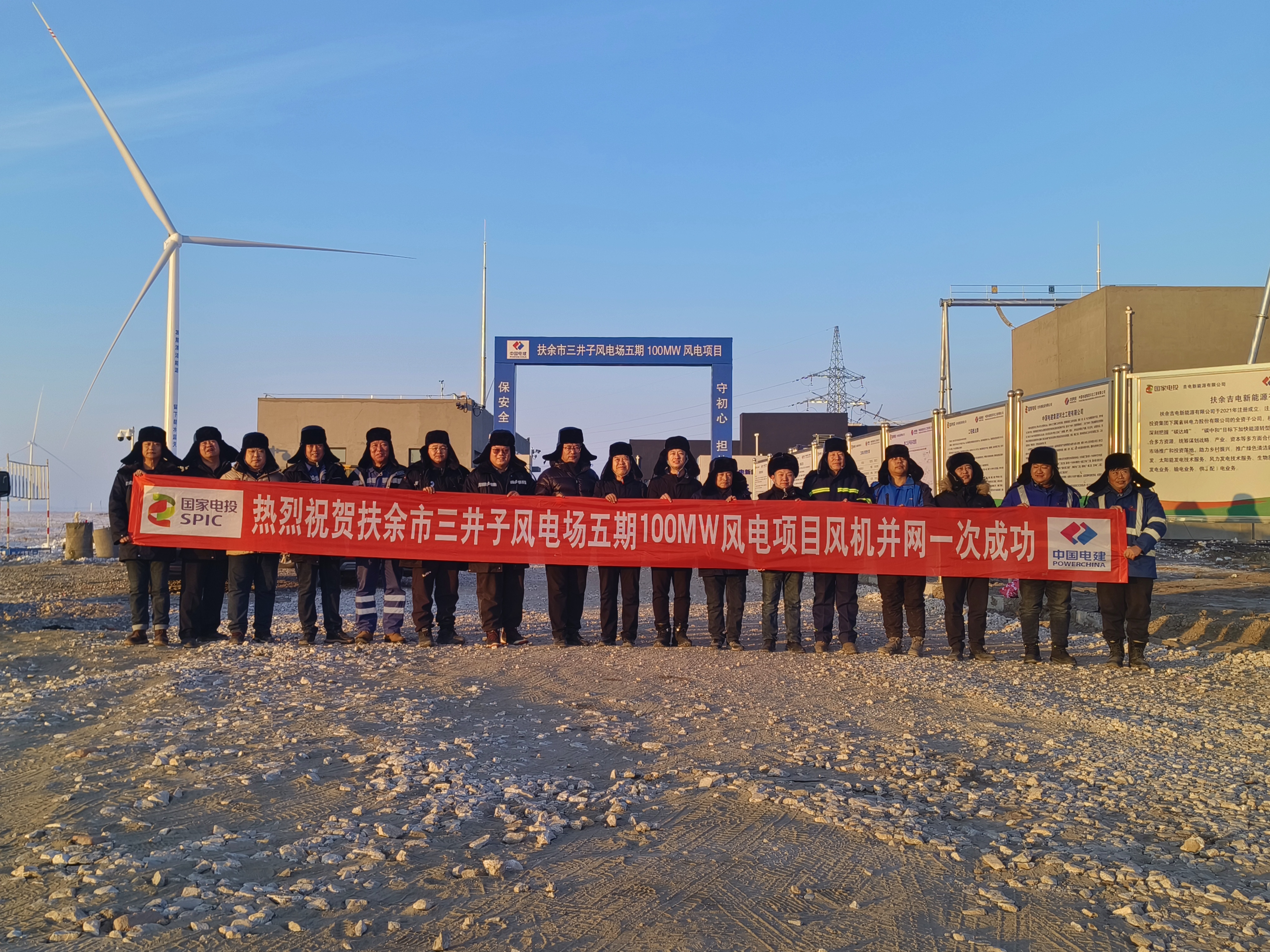 12月28日晚22时,由20台5兆瓦风电机组组成的东北区域公司吉林扶余三井子五期100兆瓦风电项目全容量并网成功。