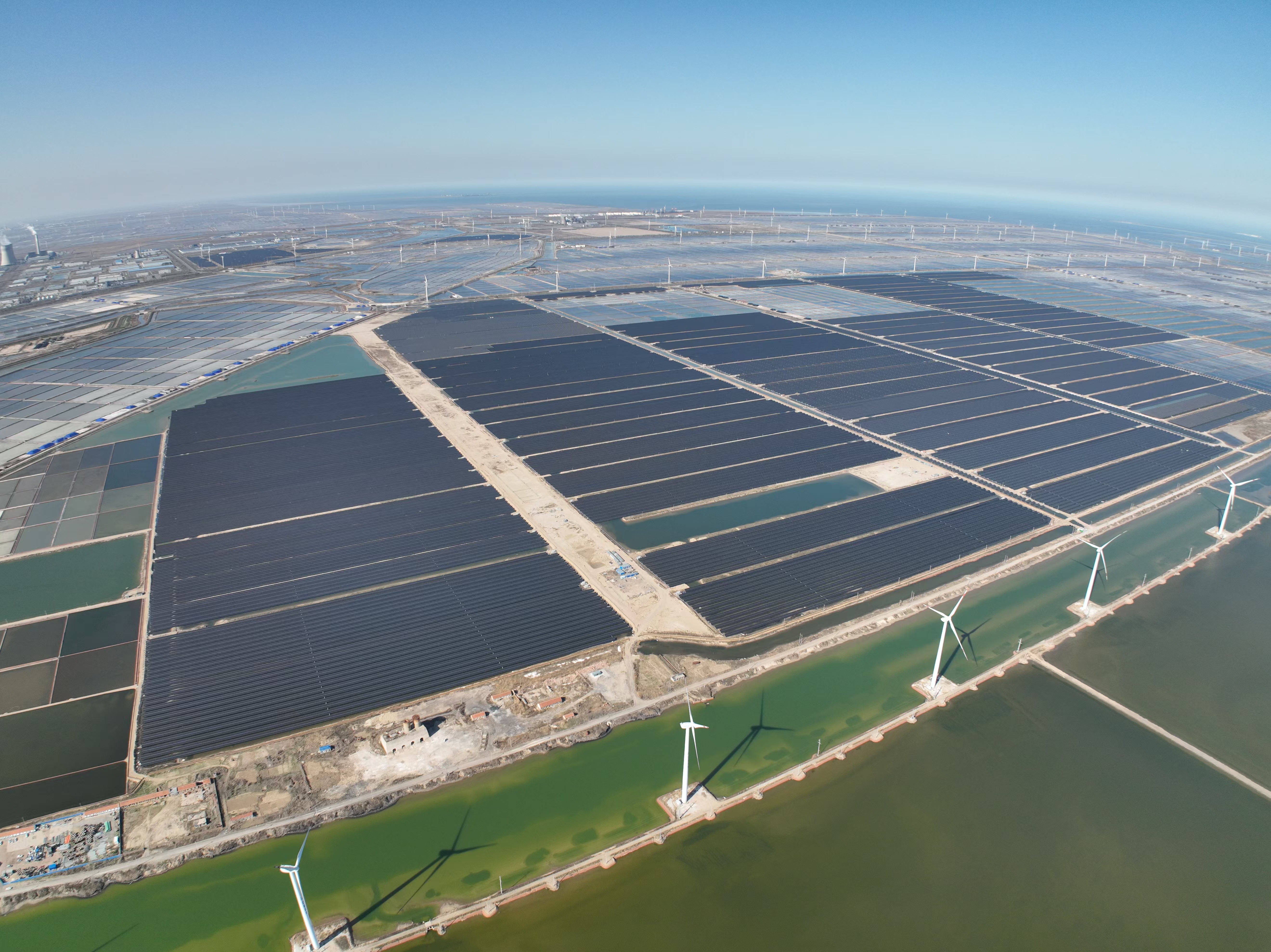 转身“新能源+”领域,山东潍坊项目二期25万千瓦风电和三期42万千瓦光伏正在如火如荼地建设,力争年内并网发电;锚定绿色氢基能源赛道,大安风光制绿氢合成氨一体化示范项目制氢合成氨部分土建施工完成99%,新能源部分风机基础浇筑完成94%,光伏支架、组件完成安装接线,全力确保“5.30”投产目标顺利实现。