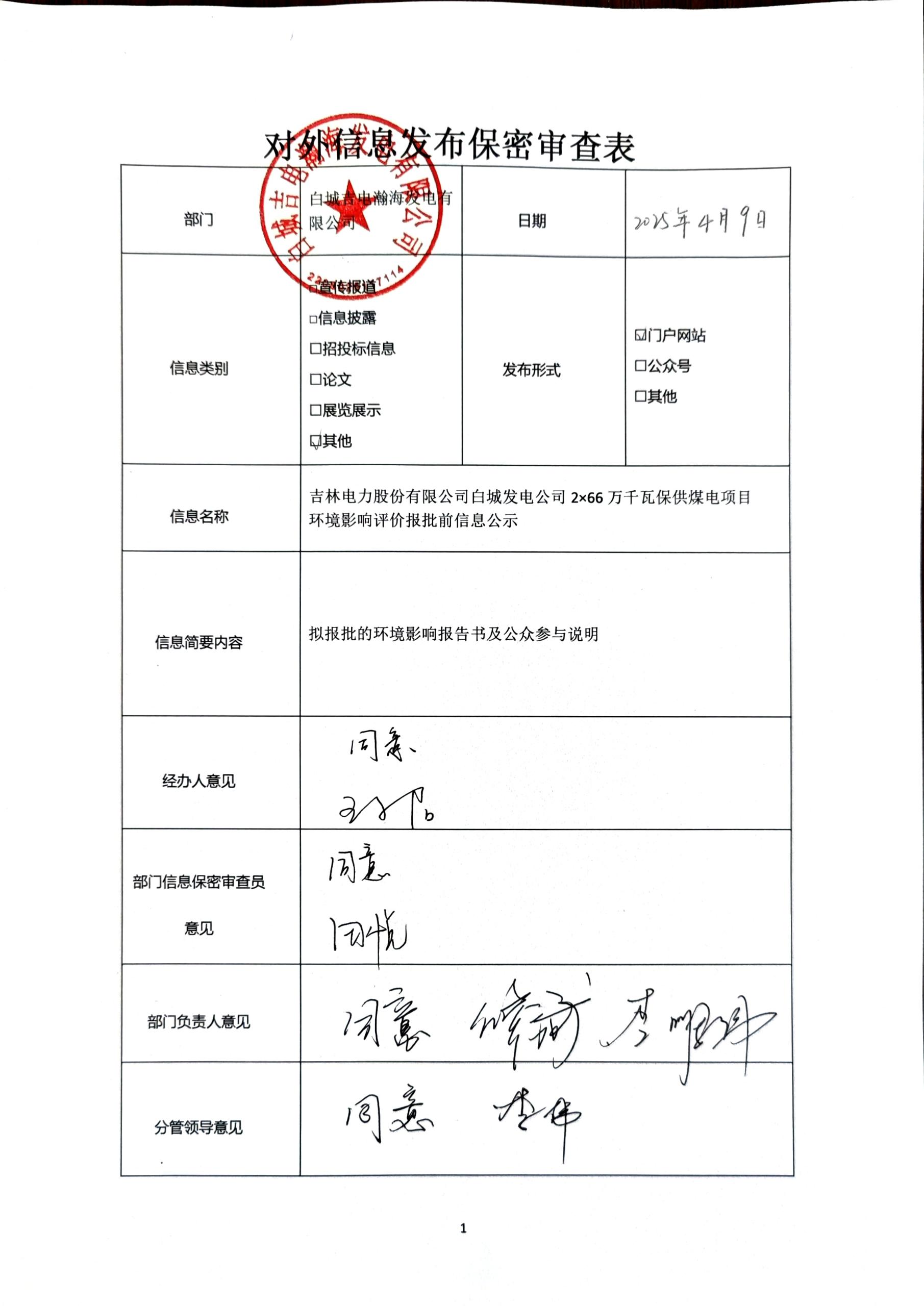 吉林电力股份有限公司白城发电公司2x66万千瓦保供煤电项目环境影响评价报批前信息公示(图)