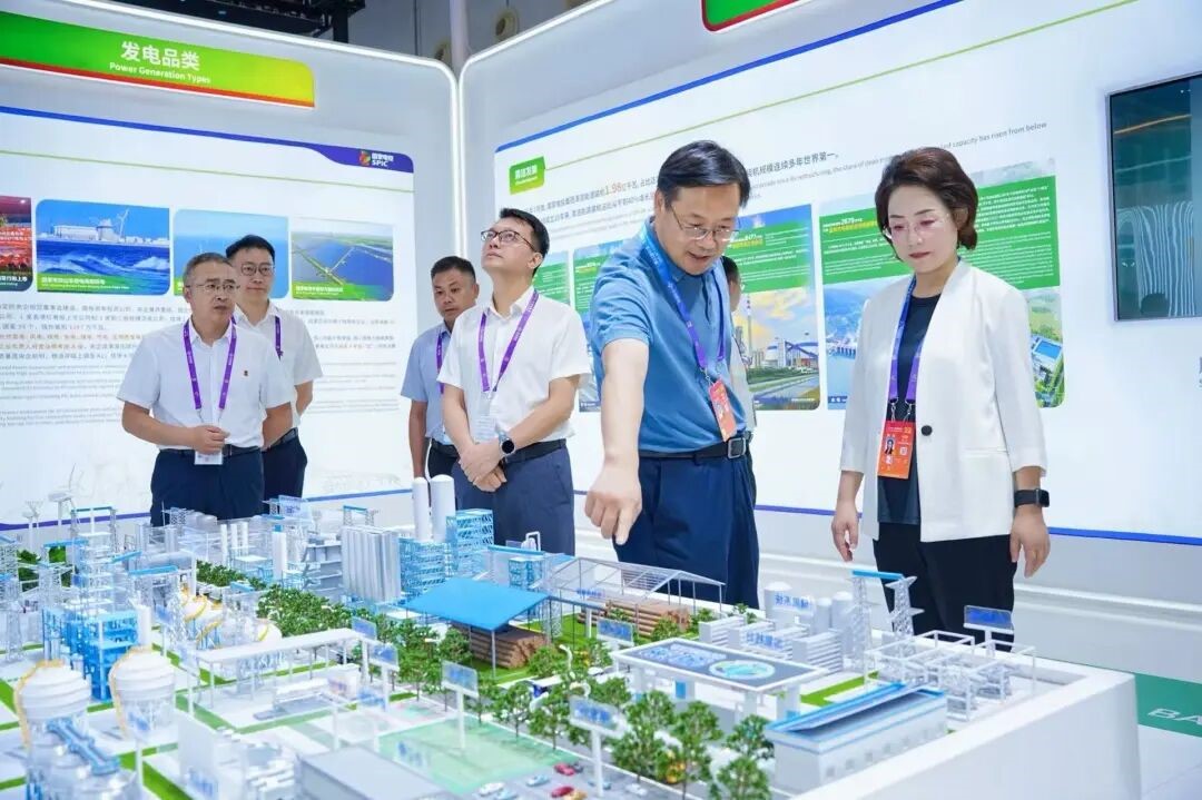 在国家电投集团展区,一座精心设计的沙盘吸引众多目光,成为展会焦点。