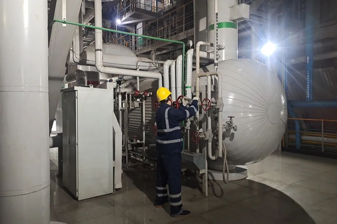 图丨长春热电公司运行人员对热加排空门进行校紧