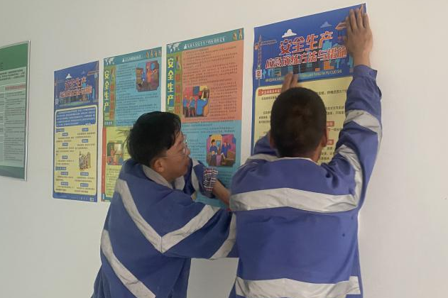 图|西北区域公司员工正在张贴安全生产宣传海报