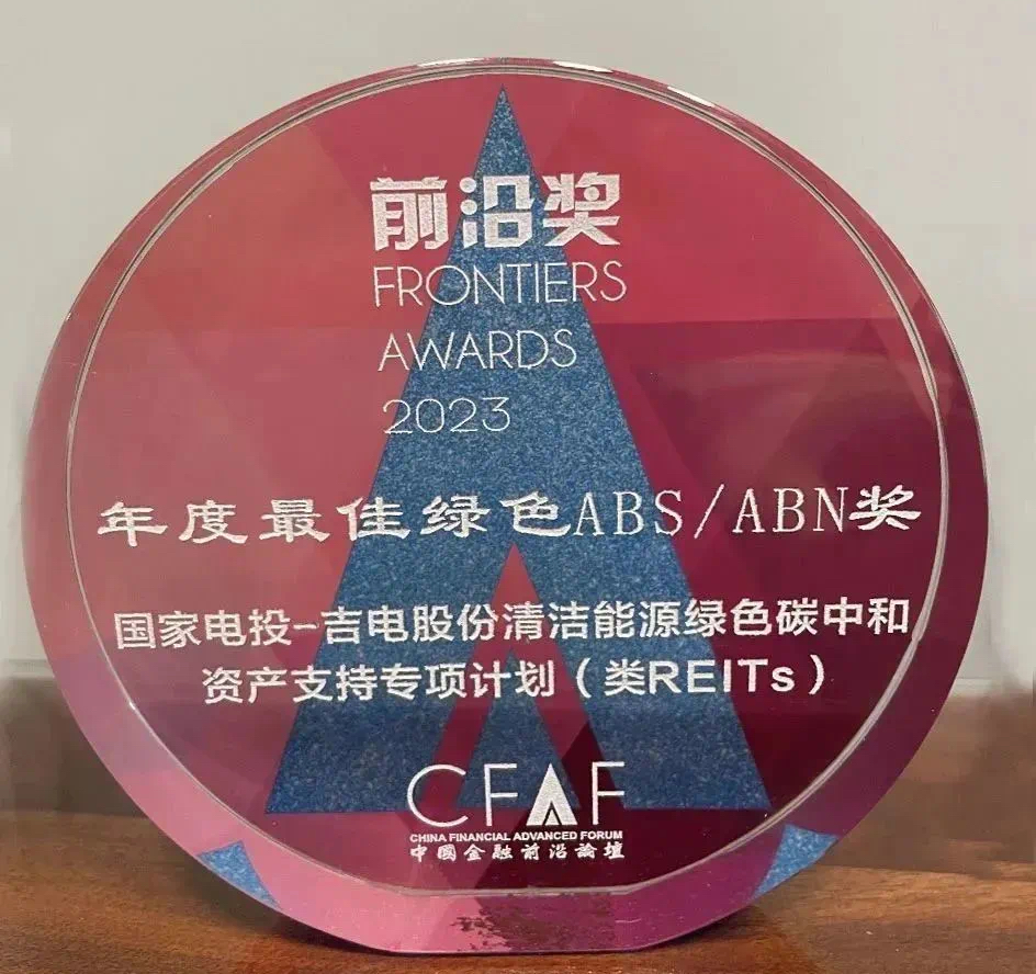 11月15日,中国资产证券化论坛、中国金融前沿论坛及多家权威机构联合举办的“第八届中国不动产证券化合作发展大会”暨2023年不动产证券化“前沿奖”年度表彰颁奖典礼于北京举行,公司发行的“国家电投-吉电股份清洁能源绿色碳中和资产支持专项计划(类REITs)”项目荣获“年度最佳绿色ABS奖”,此项荣誉充分体现了不动产证券化市场对公司在资本市场创新资产证券化融资的高度认可,树立了清洁能源类REITs项目行业标杆。