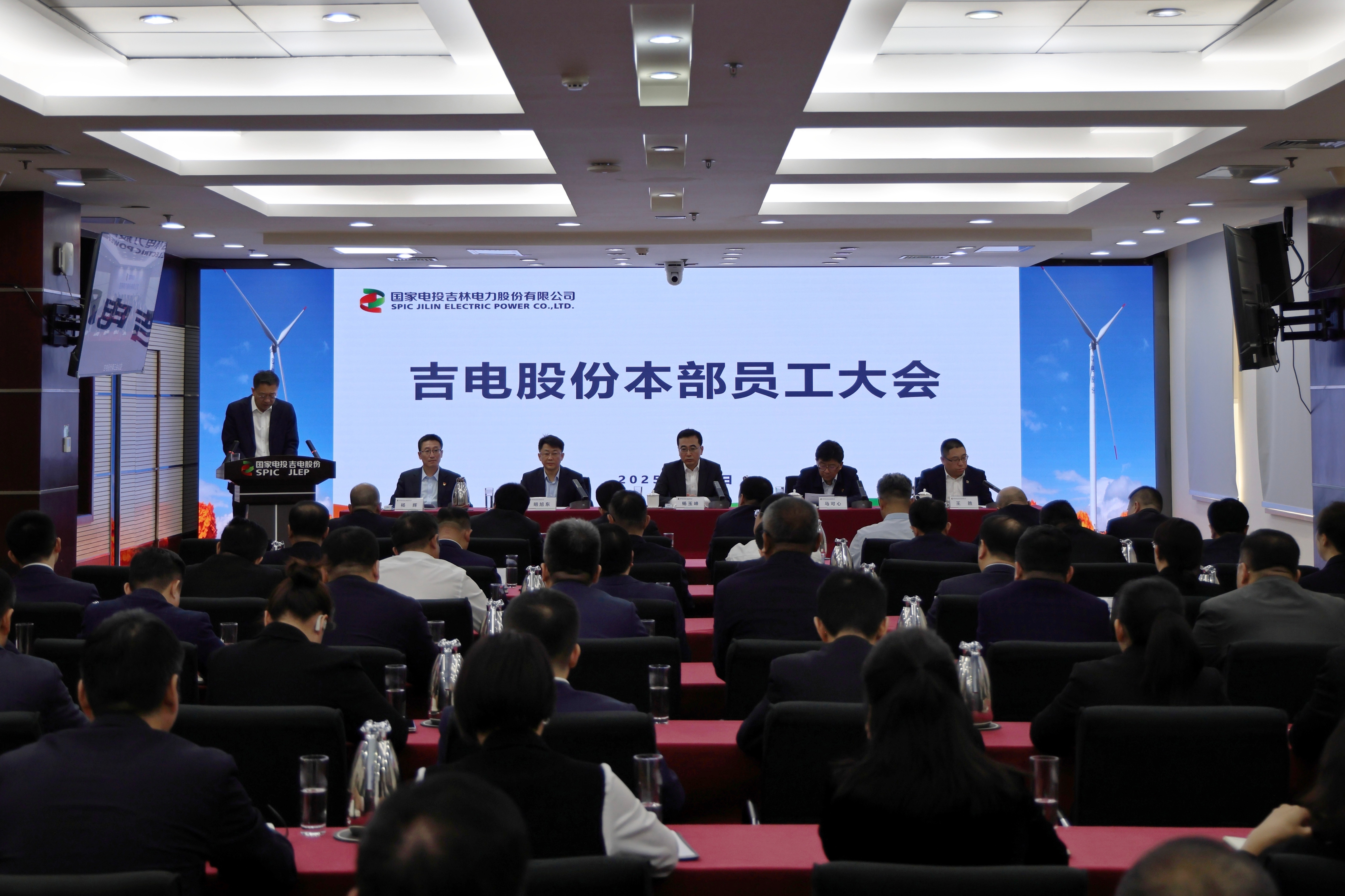 4月9日,吉电股份召开本部员工大会,总结本部组织机构优化调整工作,动员本部全体员工,立足新起点,抓住新机遇,跑好新赛道,以新气象、新担当、新作为,开创新时代吉电股份高质量发展新局面。公司党委书记、董事长杨玉峰出席会议并讲话,党委副书记、工会主席明旭东主持会议。
