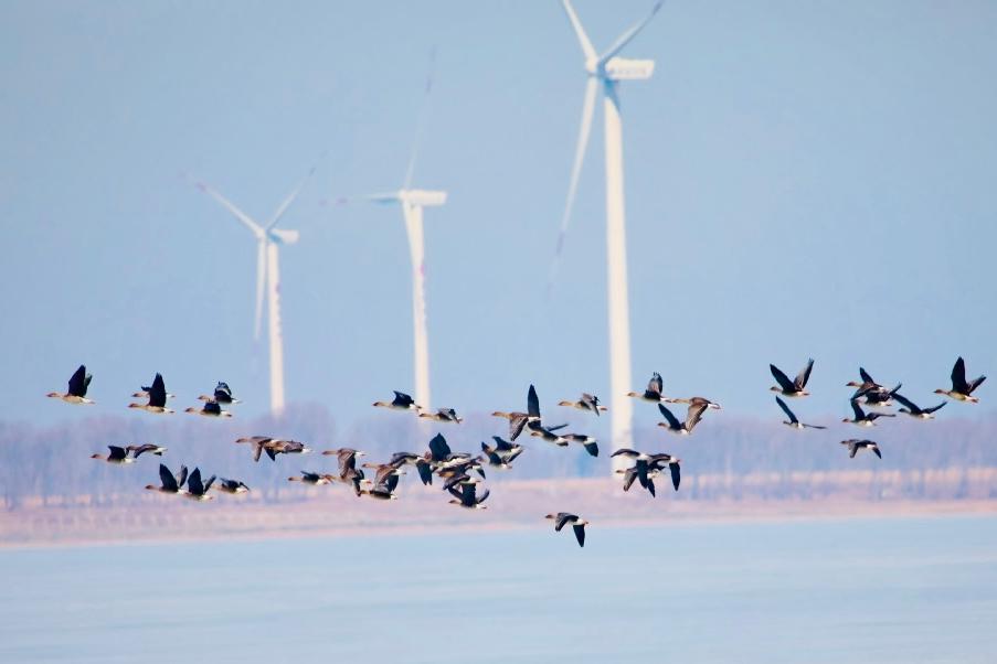 如今,东方白鹳在风机下悠闲觅食,雁阵掠过叶片的画面被摄影师定格。“清洁能源与自然生灵共生,这就是美丽中国的注脚。”一位前来查干湖游玩的旅客感叹道。