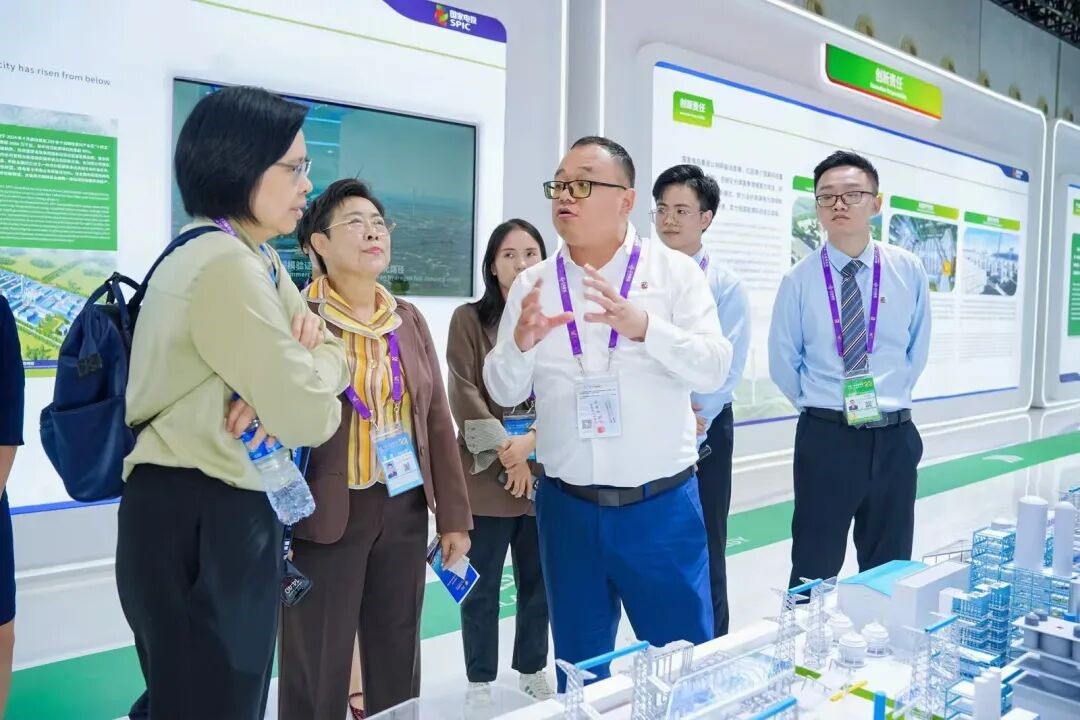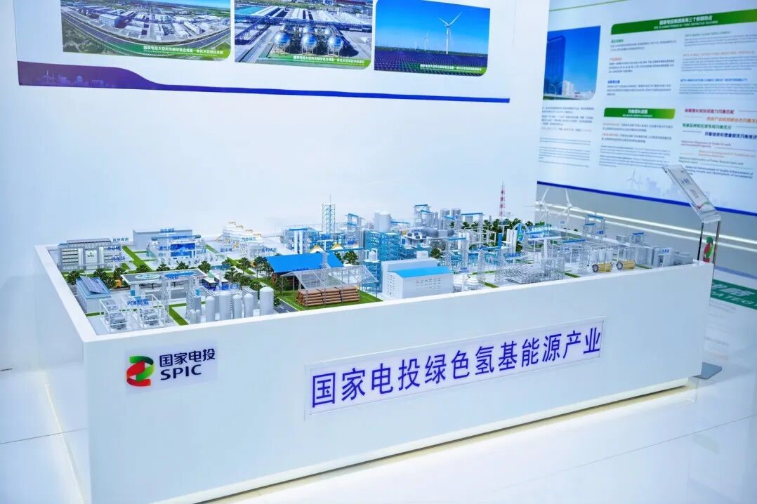 在国家电投集团展区,一座精心设计的沙盘吸引众多目光,成为展会焦点。
